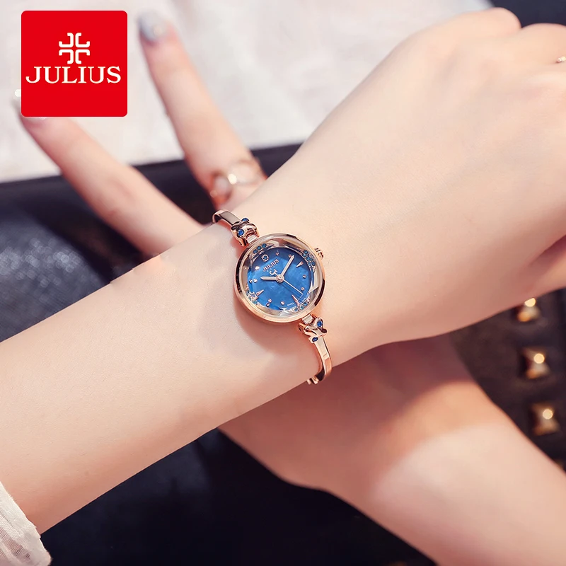 Kopen Goedkoop Julius Merk Vrouwen Horloges Luxe Rose Goud Roestvrij Staal Quartz horloge Dames Jurk Strass Armband Horloge Relogio Feminino Prijs