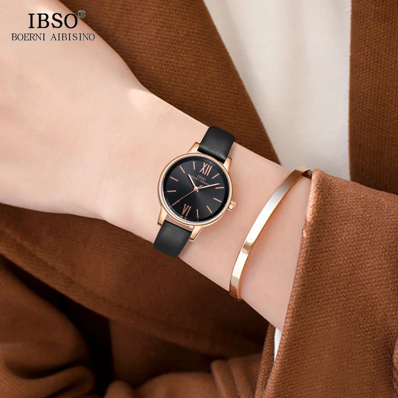 Goede Kopen IBSO Dunne Quartz Horloge Vrouwen Echt Lederen Horloges Vrouwelijke Klok Mode Montre Femme 2018 Dames Horloge Relogio Feminino Goedkoop